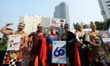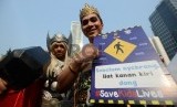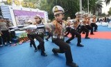 REPUBLIKA.CO.ID, JAKARTA -- Polisi cilik membawakan tarian peragaan pengaturan lalu lintas dalam rangka HUT Polantas di Area Car Free Day (CFD) Bundaran HI, Jakarta, Ahad (27/9).