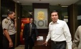 Anggota Komisi Yudisial Taufiqurrohman Syahuri memasuki kendaraanya usai mejalani pemeriksaan sebagai tersangka dalam dugaan pencemaran nama baik hakim Sarpin Rizaldi di Bareskrim Mabes Polri, Jakarta Selatan, Senin (28/9). (Republika/Raisan Al Farisi)