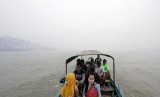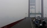 REPUBLIKA.CO.ID, PALEMBANG -- Sejumlah pengendara melintas diatas jembatan Ampera dengan latar perairan sungai Musi yang tertutup kabut asap, Palembang, Sumsel. Selasa (29/9).