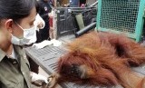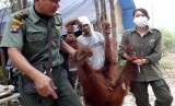Orang utan jantan itu diduga memasuki permukiman warga karena hutan yang menjadi habitatnya rusak akibat kebakaran.