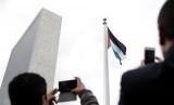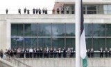 REPUBLIKA.CO.ID, NEW YORK -- Bendera Palestina berkibar untuk pertama kalinya di Markas PBB, New York, Rabu (30/9).