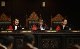 REPUBLIKA.CO.ID, JAKARTA -- Ketua Hakim Konsitusi, Arief Hidayat memimpin sidang perkara pengujian konstitusionalitas kewenangan Kepolisian menerbitkan Surat Izin Mengemudi (SIM) yang digugat Yayasan Lembaga Hukum Indonesia (YLBHI) di Ruang Sidang Utama Gedung MK, Jakarta, Kamis (1/10).