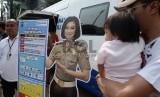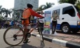 REPUBLIKA.CO.ID, JAKARTA -- Warga mencari informasi tentang SIM Online saat Hari Bebas Kendaraan Bermotor (HBKB) di Bundaran HI, Jakarta, Ahad (4/10).