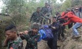 REPUBLIKA.CO.ID, Tim gabungan Basarnas, TNI, Polri dan warga lokal mengevakuasi korban pesawat Aviastar DHC6/PK-BRM Dusun Gamaru, Desa Ulu Salu, Kecamatan Latimojong, Kabupaten Luwu, Sulawesi Selatan, Selasa (5/10).