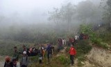 Tim gabungan Basarnas, TNI, Polri dan warga lokal mengevakuasi korban pesawat Aviastar DHC6/PK-BRM Dusun Gamaru, Desa Ulu Salu, Kecamatan Latimojong, Kabupaten Luwu, Sulawesi Selatan, Selasa (5/10). (Antara/Sahrul Manda Tikupadang)