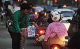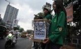 REPUBLIKA.CO.ID, JAKARTA -- Mahasiswa Universitas Nasional menggelar aksi penggalangan dana untuk Salim Kancil di kawasan Mampang, Jakarta Selatan, Rabu (7/10). Aksi penggalangan dana dan membagikan selebaran kepada pengendara yang melintas ini dimaksudkan sebagai bentuk solidaritas dan kepedulian bagi aktivis lingkungan Salim Kancil yang tewas dibunuh karena menolak penambangan pasir ilegal di Lumajang.