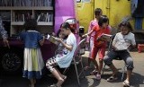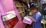 Sejumlah anak membaca buku yang disediakan gratis di mobil perpustakaan keliling, Tanah Abang, Jakarta Pusat, Ahad (11/10). (Antara/Sigid Kurniawan)