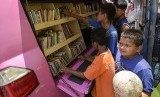 REPUBLIKA.CO.ID, JAKARTA -- Sejumlah anak membaca buku yang disediakan gratis di mobil perpustakaan keliling, Tanah Abang, Jakarta Pusat, Ahad (11/10).