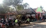 Aparat kepolisian berjaga di rumah Tosan, petani penolak tambang pasir yang menjadi korban penganiayaan preman tambang di Desa Selok Awar-Awar, Lumajang, Jawa Timur, Rabu (14/10).Republika/Wihdan Hidayat (FOTO : Republika/Wihdan Hidayat)