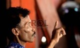 Tosan, petani penolak tambang pasir yang menjadi korban penganiayaan preman tambang saat menemui warga yang berkunjung ke rumahnya di Desa Selok Awar-Awar, Lumajang, Jawa Timur, Rabu (14/10).Republika/Wihdan Hidayat (FOTO : Republika/Wihdan Hidayat)