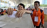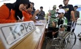 REPUBLIKA.CO.ID, MAKASSAR -- Seorang penyandang cacat menunggu pendataan saat simulasi pemilihan dan sosialisasi Pilkada, di Makassar, Sulawesi Selatan, Sabtu (17/10).