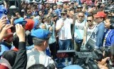 Para bobotoh yang berangkat wajib mempunyai tiket, pemeriksaan dilakukan pada saat keberangkatan Bobotoh di depan Gedung Sate, Jl Diponegoro, Kota Bandung. Ahad (18/10). (Republika/Edi Yusuf)