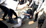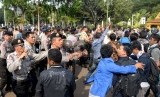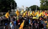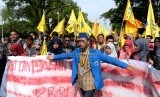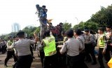 REPUBLIKA.CO.ID, JAKARTA -- Mahasiswa yang tergabung dalam PMII melakukan aksi unjuk rasa di depan Istana Merdeka, Jakarta, Senin (19/10).