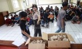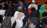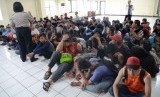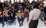 REPUBLIKA.CO.ID, JAKARTA -- Ratusan pemuda menunggu jemputan dari keluarga seusai diberi pembinaan oleh petugas Kepolisian di Polres Jakarta Selatan, Jakarta, Senin (19/10).