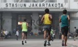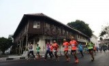 Sejumlah peserta Jakarta Mandiri Marathon melintasi Kawasan Kota Tua, Jakarta Barat, Ahad (25/10). (Republika/Raisan Al Farisi)
