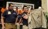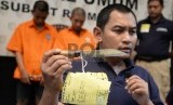 REPUBLIKA.CO.ID, JAKARTA -- Tersangka dan barang bukti pencurian sepeda motor dan geng motor ditunjukkan saat gelar perkara di Polda Metro Jaya, Jakarta, Ahad (25/10).