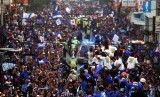 REPUBLIKA.CO.ID, BANDUNG -- Ribuan warga memadati jalan raya Kota Bandung, untuk menyaksikan pawai kemenangan Persib yang diselenggarakan pada Ahad (25/10).