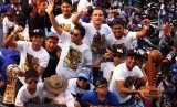 Sejumlah pemain kesebelasan Persib saat pawai di Jalan Otto Iskandardinata, Kota Bandung, Ahad (25/10). (foto : Septianjar Muharam)