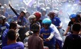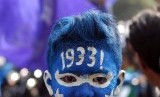 Seorang bobotoh mengikuti pawai kemenangan Persib menjuarai Piala Presiden 2015 di Jalan Perintis Kemerdekaan, Kota Bandung, Ahad (25/10). (foto : Septianjar Muharam)