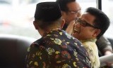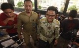 Mantan Menakertrans Muhaimin Iskandar (kanan) tiba di Gedung KPK untuk menjalani pemeriksaan di Jakarta, Rabu (28/10). (Antara/Akbar Nugroho Gumay)