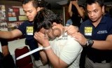 LWK (27) tersangka pelaku pengeboman Mal Alam Sutera digiring petugas di Mapolda Metro Jaya, Jakarta, Kamis (29/10). (Repubika/ Wihdan)