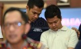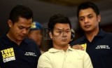 LWK (27) tersangka pelaku pengeboman Mal Alam Sutera diapit petugas di Mapolda Metro Jaya, Jakarta, Kamis (29/10). (Repubika/ Wihdan)