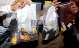 Petugas menunjukan barang bukti saat rilis pelaku pengeboman Mal Alam Sutera di Mapolda Metro Jaya, Jakarta, Kamis (29/10). (Repubika/ Wihdan)