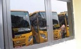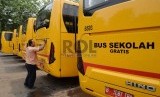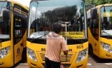 REPUBLIKA.CO.ID, JAKARTA -- Pekerja membersihkan bus sekolah di Terminal Pasar Minggu, Jakarta, Jumat (30/10).