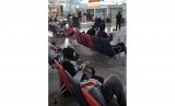 Petugas bandara memberi penjelasan kepada sejumlah warga negara asing saat mereka menunggu jadwal penerbangannya di Terminal Internasional Bandara Ngurah Rai, Denpasar, Rabu (4/11). (Antara/Nyoman Budhiana)