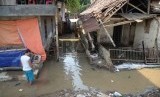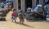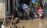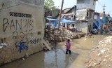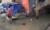 REPUBLIKA.CO.ID, JAKARTA -- Warga beraktivitas saat air menggenangi RT 03 RW 03 Kampung Pulo yang bermukim persis depan lokasi pengerjaan proyek normalisasi Ciliwung, Jakarta, Senin (9/11).