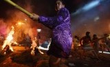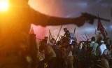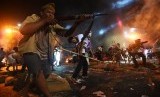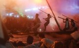 REPUBLIKA.CO.ID, SURABAYA -- Sejumlah pejuang Indonesia melawan pasukan Inggris pada pementasan drama kolosal Surabaya Membara di Surabaya, Jawa Timur, Senin (9/11) malam.