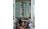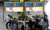 Sejumlah warga negara asing memastikan jadwal penerbangan di Terminal Internasional Bandara Ngurah Rai, Denpasar, Selasa (10/11). (Antara/Nyoman Budhiana)