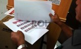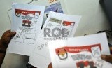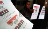 REPUBLIKA.CO.ID, JAKARTA -- Pekerja menunjukkan desain surat suara dikantor Komisi Pemilihan Umum, Jakarta, Rabu (11/11).