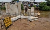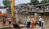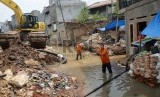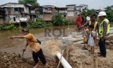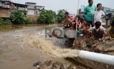 REPUBLIKA.CO.ID, JAKARTA -- Pekerja membuat saluran air sementara untuk menyedot air sungai yang masuk ke permukiman Kampung Pulo, Jakarta, Jumat (13/11).
