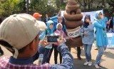 REPUBLIKA.CO.ID, JAKARTA -- Aktivis menggunakan kostum serta membawa poster saat mengkampanyekan toilet bersih di kawasan undaran HI, Jakarta, Ahad (15/11).