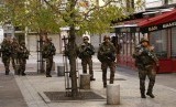 Tentara Prancis berpatroli di kawasan Saint-Denis di utara kota Paris, Rabu (18/11). (AP/Francois Mori)