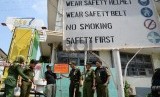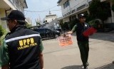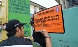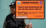 REPUBLIKA.CO.ID, JAKARTA -- Petugas memasang plang penunggak PBB di depan PT DKB Dok Perkapalan Galangan I, Tanjung Priok, Jakarta, Senin (23/11).