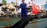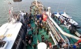 Sejumlah aparat gabungan meninjau kapal tanker MT-BS9 yang diamankan di perairan Laut Jawa, Semarang, Jawa Tengah, Jumat (27/11). (Antara/Aditya Pradana Putra)
