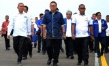 Juru kampanye nasional (Jurkamnas) Ketua DPP Partai Amanat Nasional (PAN) Zulkifli Hasan tiba di Bandara Jambi untuk memberikan arahan konsolidasi pemenangan Pilkada di kantor DPW PAN, Jambi, Ahad (29/11). (Republika/Musiron)