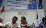 Juru kampanye nasional (Jurkamnas) Ketua DPP Partai Amanat Nasional (PAN) Zulkifli Hasan (kanan) bersama ketua DPW PAN propinsi Jambi berbincang saat temu kader di kantor DPW PAN, Jambi, Ahad (29/11). (Republika/Musiron)