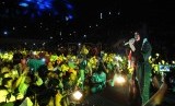 Artis Melly Goeslaw memeriakan perayaan Palestine Solidarity Day (PSD) di Istora Senayan, Jakarta, Ahad (29/11). (Republika/Tahta Aidilla)