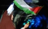 Umat muslim mengibarkan bendera saat mengikuti hari perayaan Palestine Solidarity Day (PSD) di Istora Senayan, Jakarta, Ahad (29/11). (Republika/Tahta Aidilla)