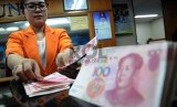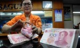 Karyawati menunjukkan mata uang Yuan di salah satu tempat penukaran valuta asing di Jakarta, Senin (30/11). (Republika/Agung Supriyanto) (FOTO : Republika/Agung Supriyanto)