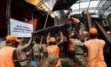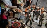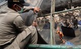 REPUBLIKA.CO.ID, JAKARTA -- Petugas Satpol PP dibantu Petugas Dinas Kebersihan membngkar lapak Pedagang Kaki Lima (PKL) di kawasan Pasar Kebayoran Lama, Jakarta Selatan, Senin (30/11).