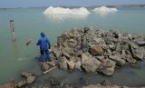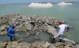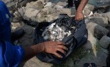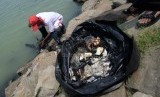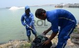 REPUBLIKA.CO.ID, JAKARTA -- Pekerja membersihkan ikan yang mati mengambang di pinggiran pantai karnaval, Ancol, Jakarta, Selasa (1/12).