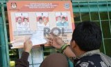 Warga melihat calon pasangan walikota sebelum menggunakan hak pilih pada pemungutan suara Pilkada Tangerang Selatan di TPS 32 yang bertempat di SMPN 11 Kota Tangerang Selatan, Rabu (9/12). (Republika/Yasin Habibi) (FOTO : Republika/ Yasin Habibi)