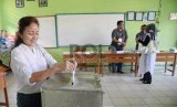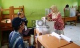 Warga menggunakan hak pilih pada pemungutan suara Pilkada Tangerang Selatan di TPS 35 yang bertempat di SMPN 11 Kota Tangerang Selatan, Rabu (9/12). (Republika/Yasin Habibi) (FOTO : Republika/ Yasin Habibi)