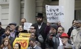 REPUBLIKA.CO.ID, NEW YORK -- Sejumlah warga Kota New York menggelar aksi unjuk rasa, Rabu (912), menentang pernyataan kandidat calon presiden Amerika Serikat dari Partai Republik, Donald Trump, yang berencana akan melarang Muslim untuk memasuki wilayah Amerika Serikat.