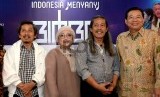 (dari kiri) Jaka Bimbo, Iin Parlina, Acil Bimbo, dan Managing Director of PT. Sinar Mas Group G. Sulistiyanto menghadiri konferensi pers Konser Indonesia Menyanyi Bimbo di Jakarta, Jumat (11/12). (Republika/Wihdan)