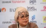 Iin Parlina menghadiri konferensi pers Konser Indonesia Menyanyi Bimbo di Jakarta, Jumat (11/12). (Republika/Wihdan)